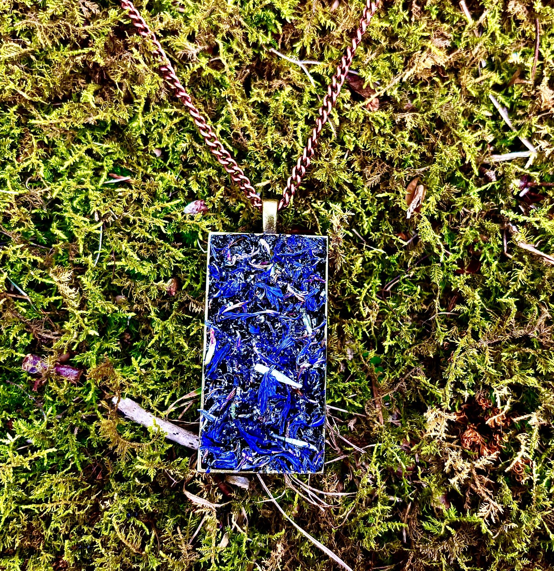 Celestial Calming Necklace • Dried Blue Cornflowers & Black Tourmaline - The Channel Shop