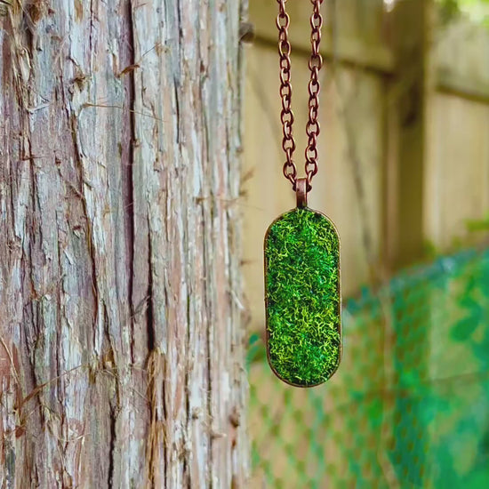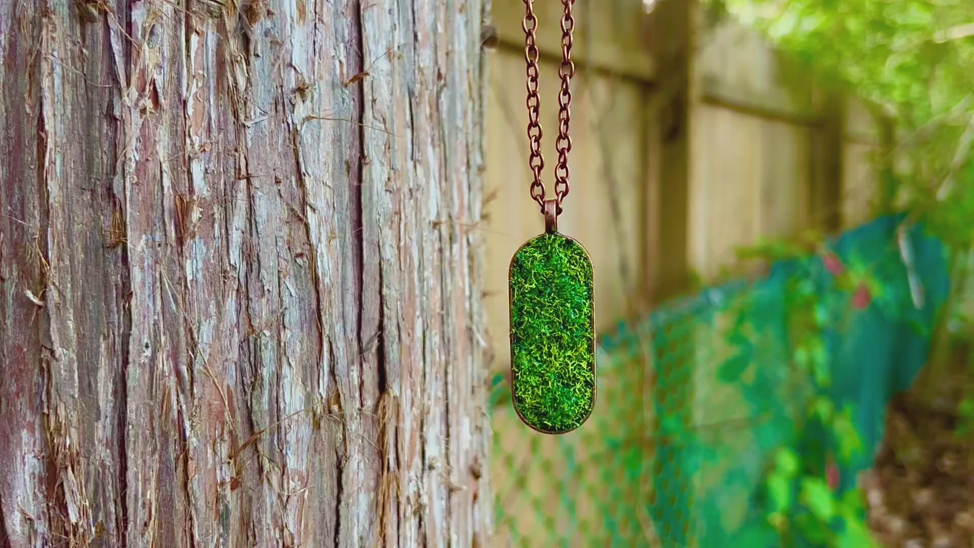 Step into nature’s embrace with this handcrafted pendant, featuring rich green moss and protective black tourmaline set in resin. Designed to capture the spirit of the forest, this piece is more than jewelry ;